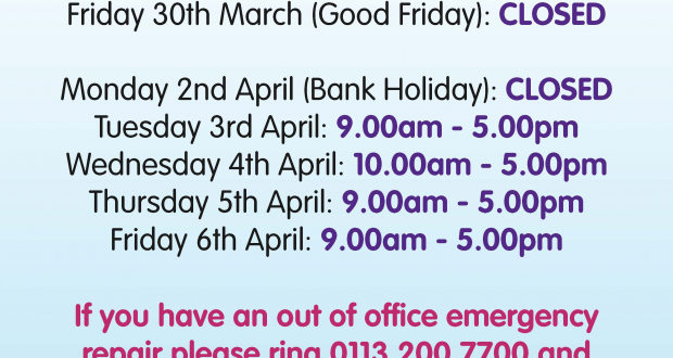 We’d like to remind our tenants and customers that our office will be closed over the Easter weekend: